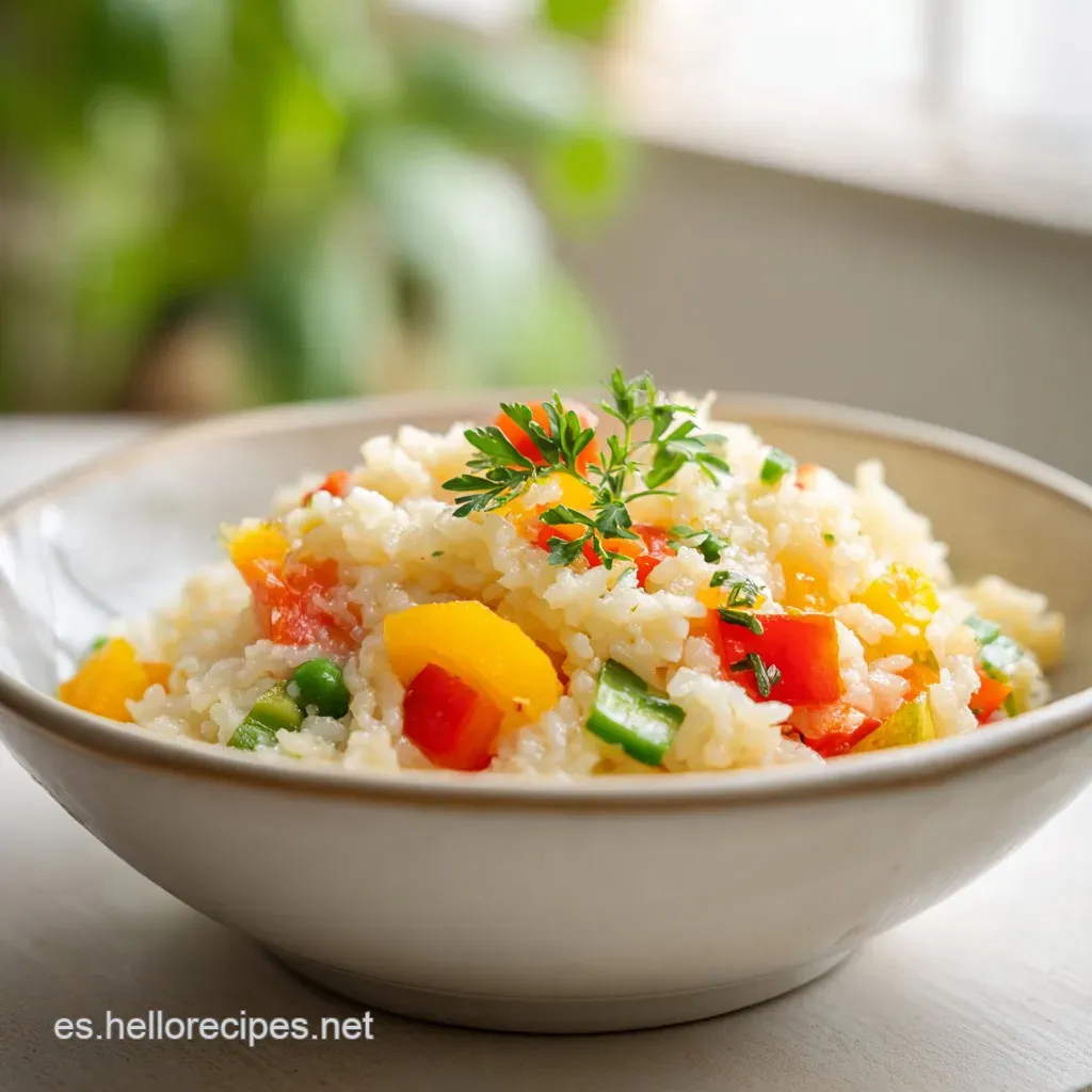 Esto evita que el arroz con verduras receta casero se convierta en una masa compacta, asegurando que cada bocado se sienta individual y elegante en la boca.