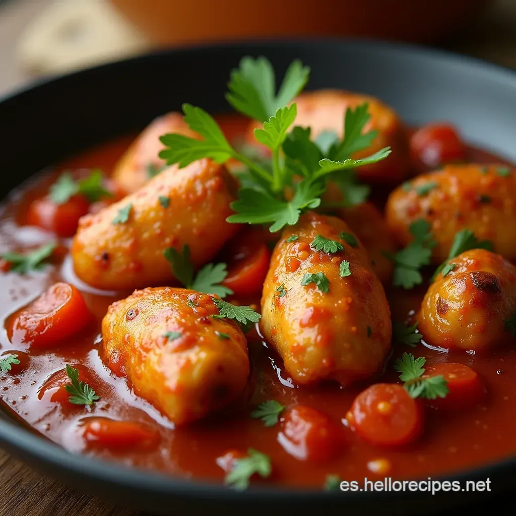 El resultado final es una Muslos de Pollo en Salsa de Tomate profunda, ligeramente ácida, pero eminentemente reconfortante.