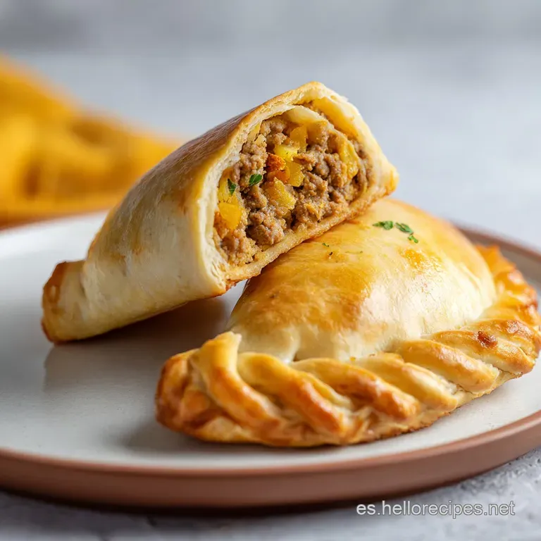 - Flavor/Texture Hook: Masa fundente con un picadillo de carne explosivamente jugoso y especiado