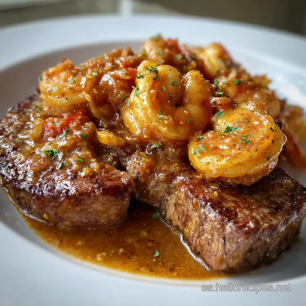 Steak Con Camarones Cajún En Salsa Cremosa De Mantequilla